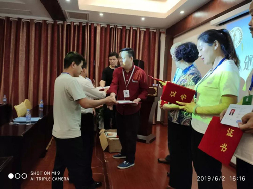 18luck官网app环境与健康普法万里行项目宜春工作组负责杨志明为学员颁发证书