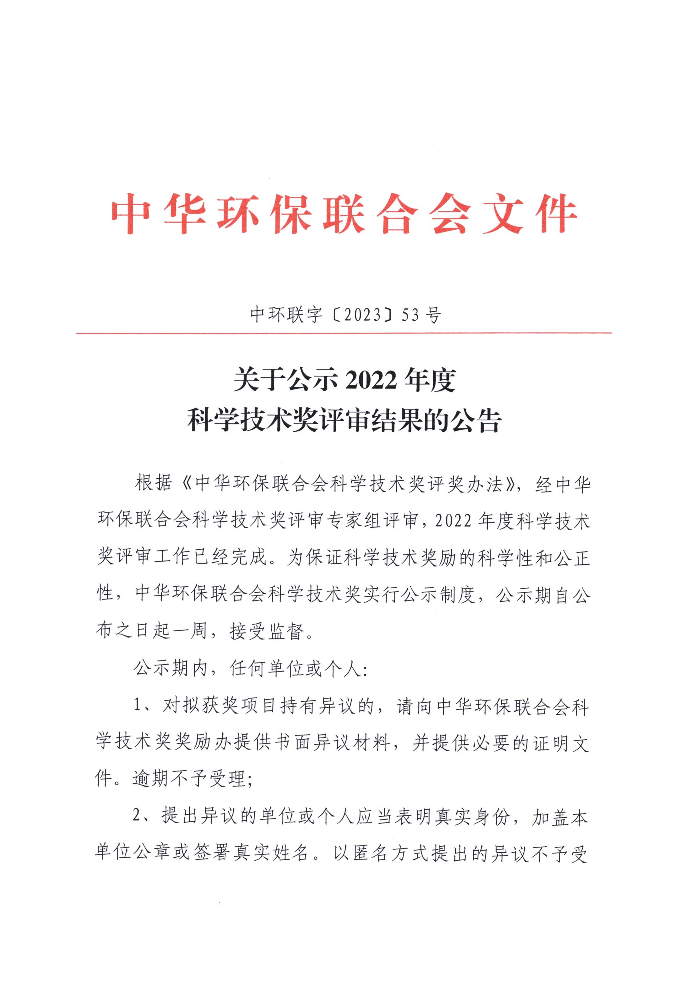 关于公示2022年度科学技术奖评审结果的公告