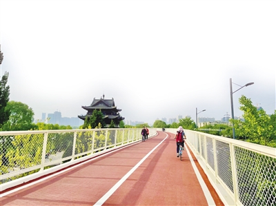 跨上一辆自行车,穿越整个城市。在太原市,滨河自行车专用道纵贯太原南北中轴线,成为当地的新地标。
