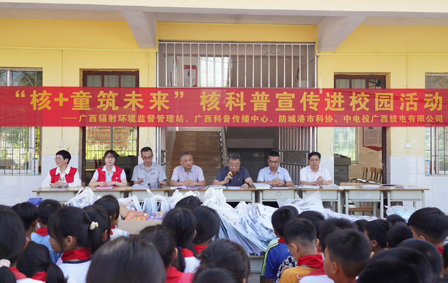 在“六五”环境日到来之际,为深入开展核科普宣传,进一步拉近核能与公众距离,来自生态环境部华南核与辐射安全监督管理站、广西壮族自治区辐射环境监督管理站(以下简称广西辐射站)、广西科普传播中心、防城港市生态环境局、防城港市科协以及中电投广西核电有限公司等单位的科普宣传员来到防城港市大勉村雁心希望小学,联合举办“核+童筑未来”核科普宣传进校园活动。