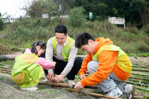 本次人工鱼巢共建活动邀请经验丰富的老渔民作为导师,为志愿者们演示人工鱼巢的搭建技术,讲解各项工具的使用技巧及注意事项。在实操环节,志愿者们以家庭为组合,纷纷上阵,齐心协力,共建鱼巢。