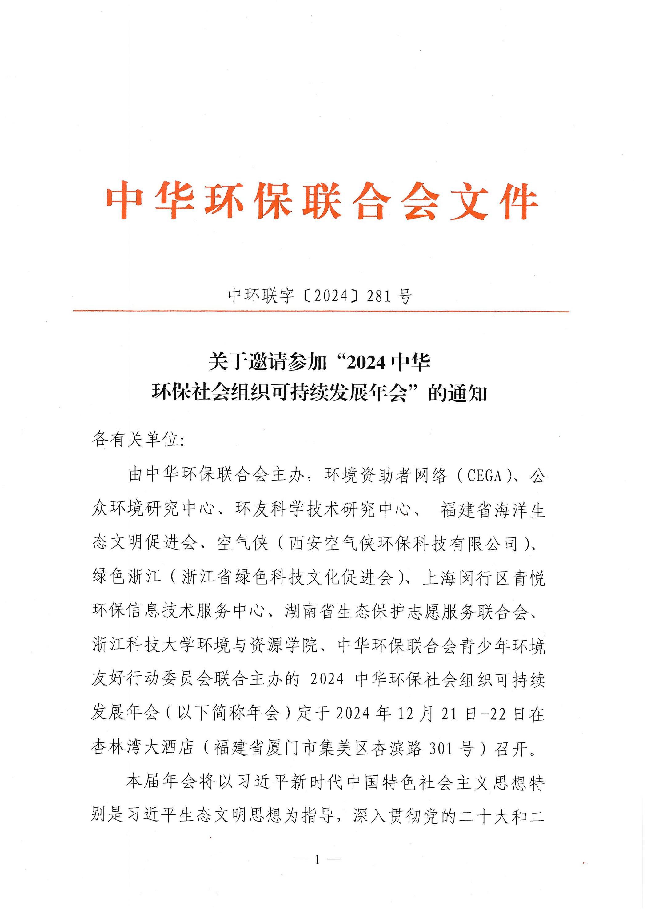关于邀请参加“2024中华环保社会组织可持续发展年会”的通知