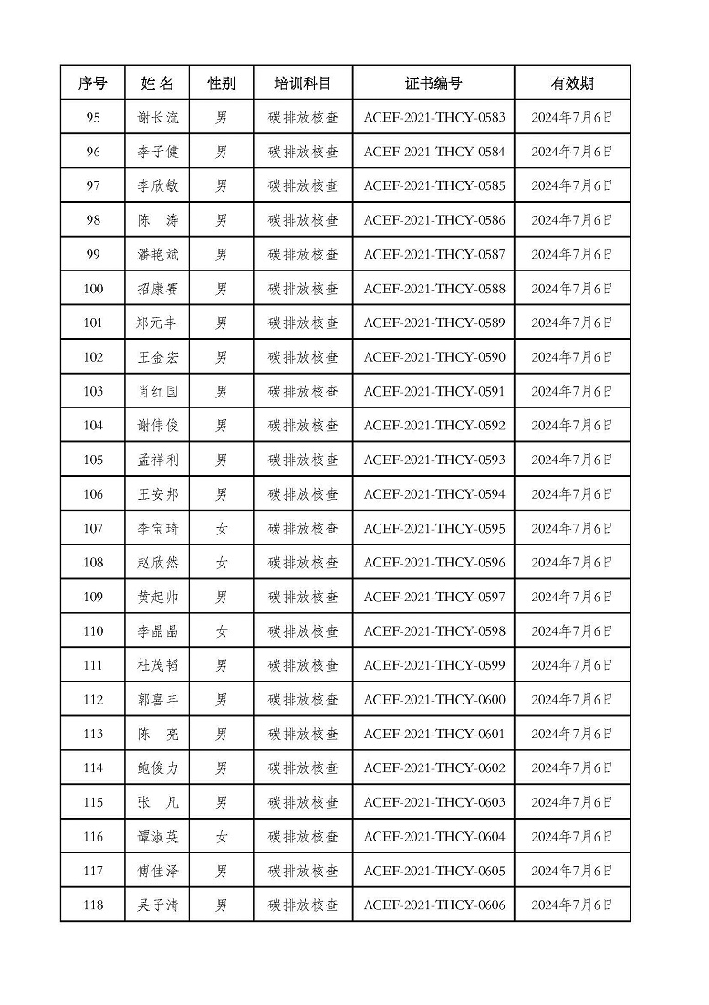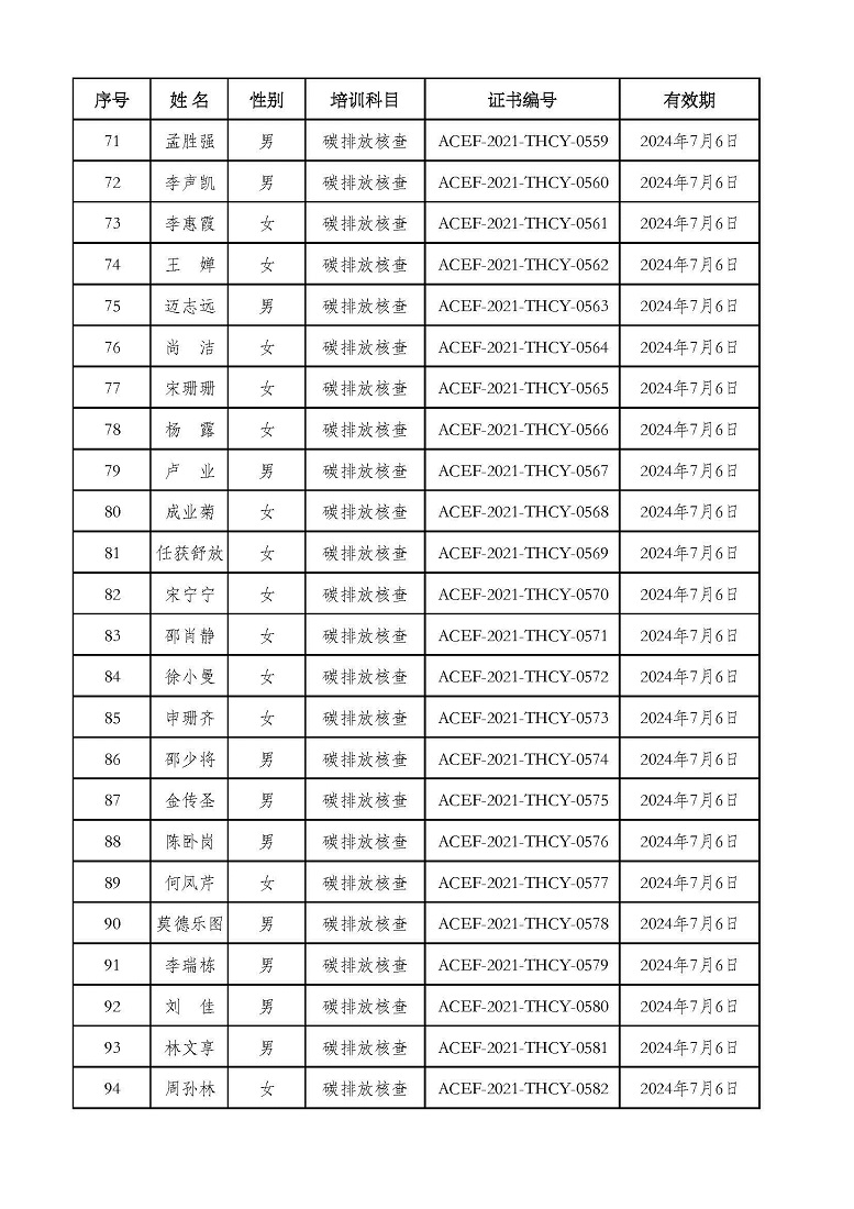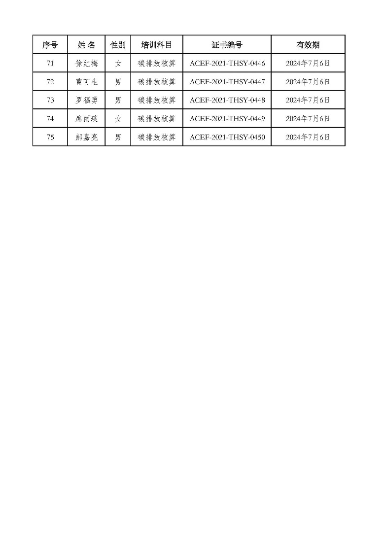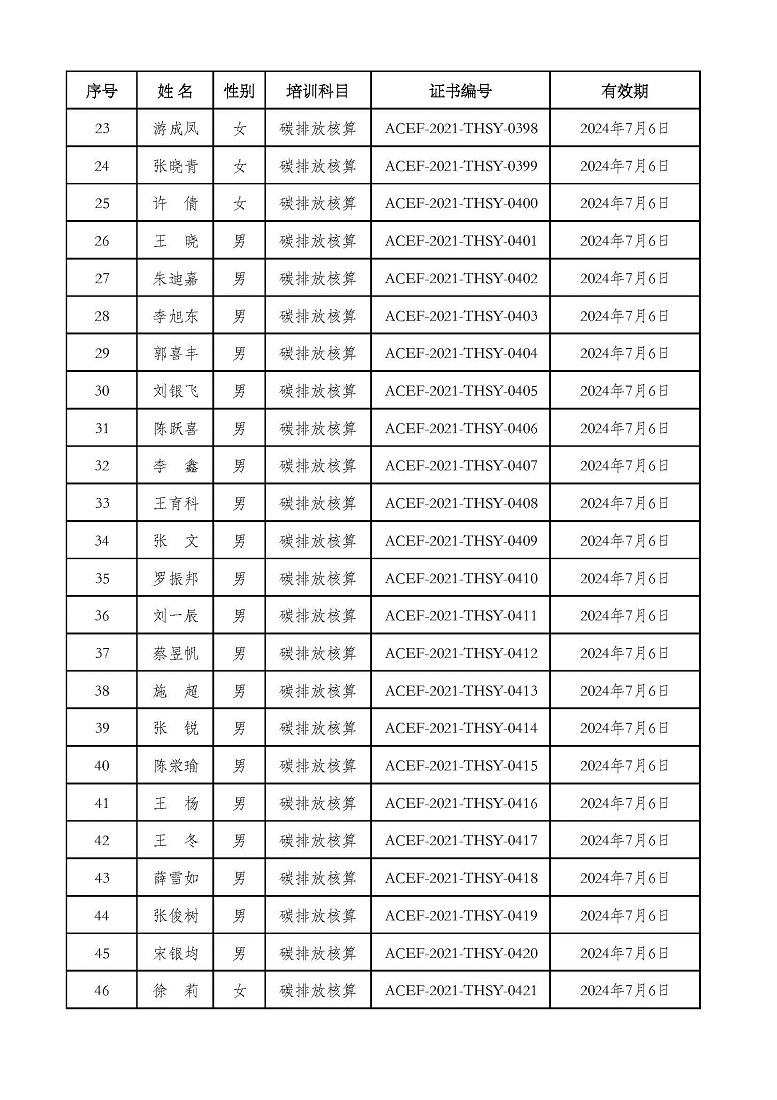 2021年第4期“碳排放管理(碳排放核算员)技术培训班”合格学员公示