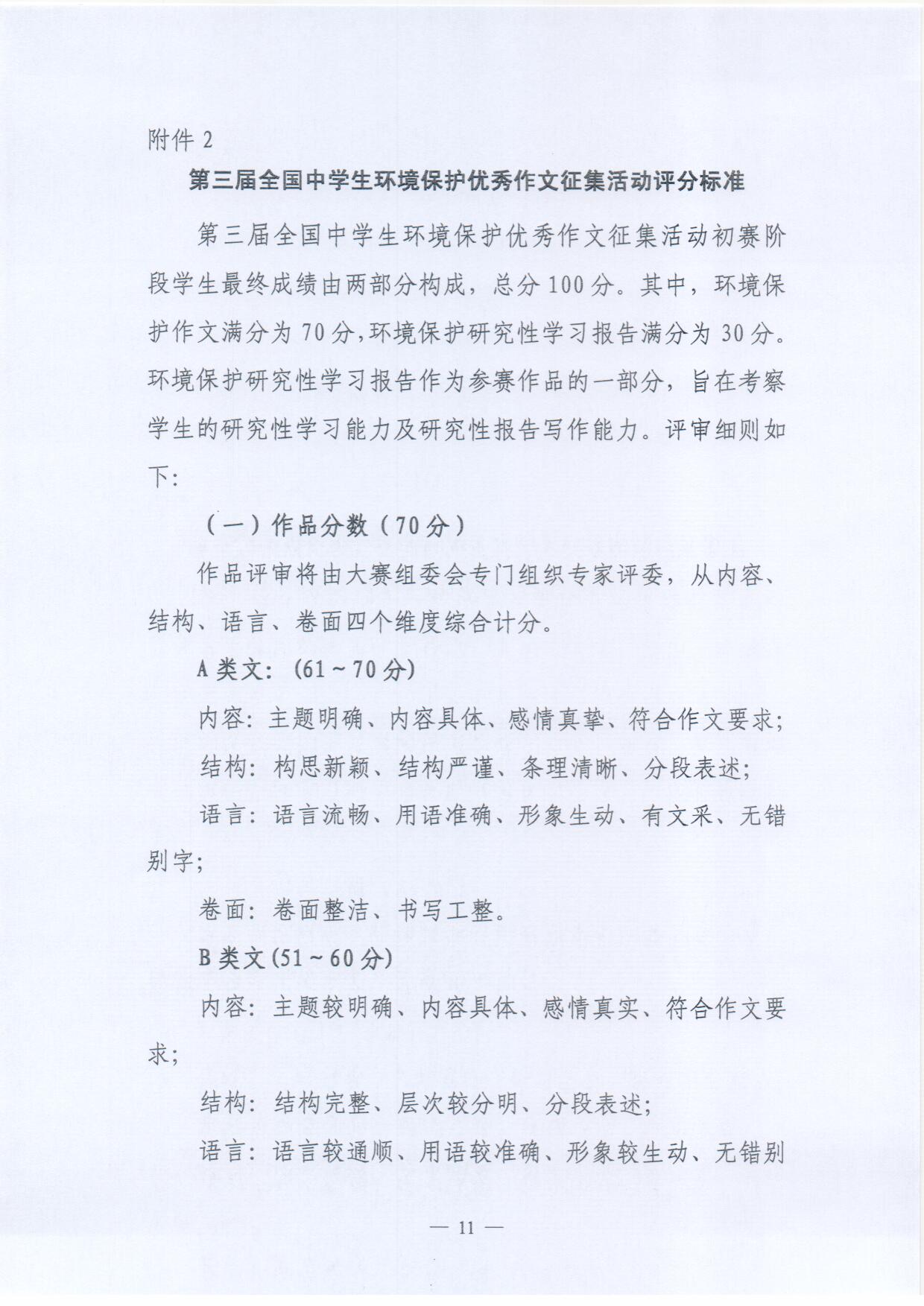 关于举办第三届全国中学生环境保护优秀作文征集活动的通知