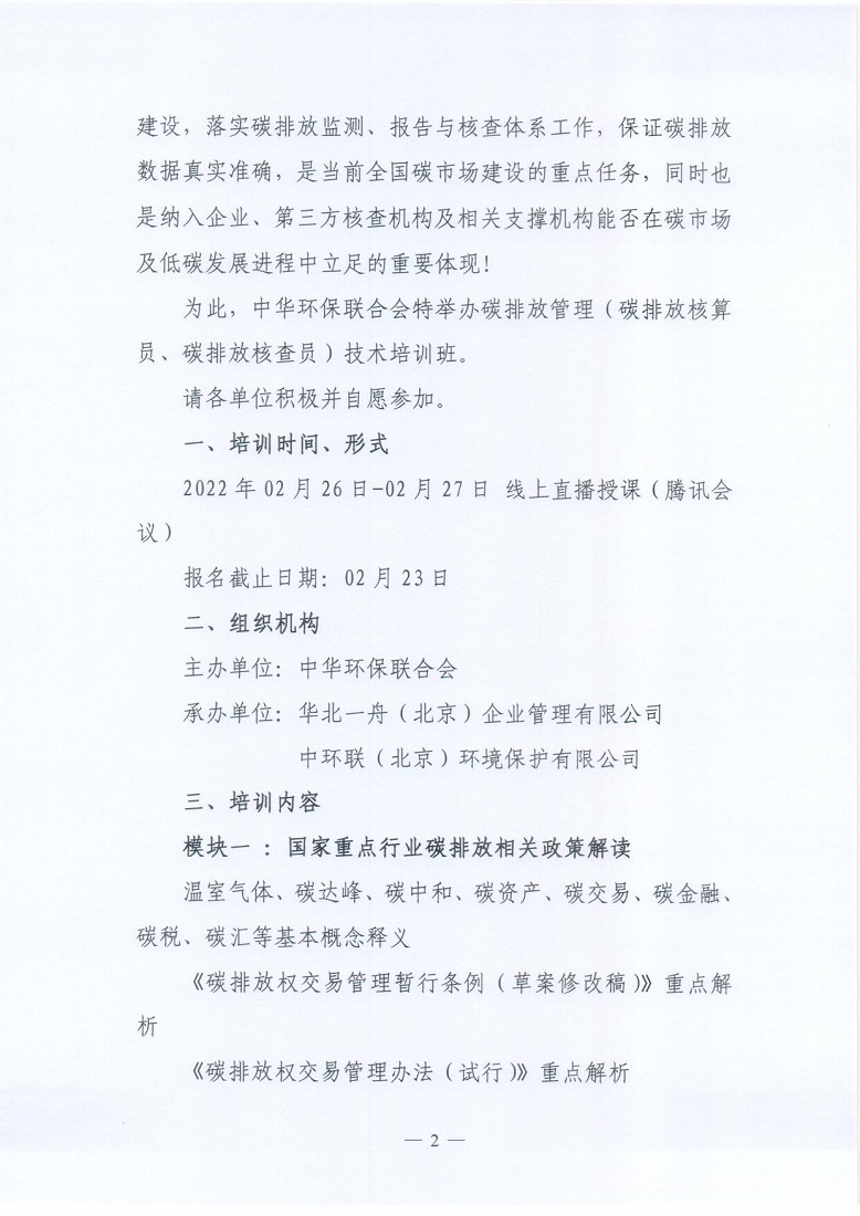 关于举办2022年第10期“碳排放管理(碳排放核算员、碳排放核查员)技术培训班”的通知