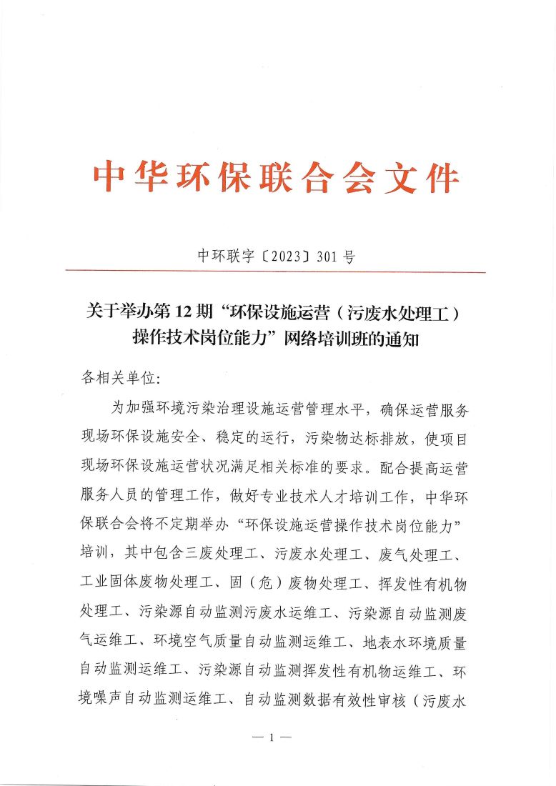 关于举办第12期“18luck新利苹果(污废水处理工)操作技术岗位能力”网络培训班的通知