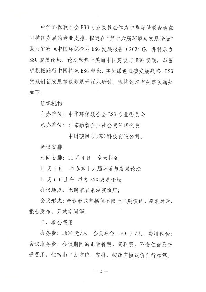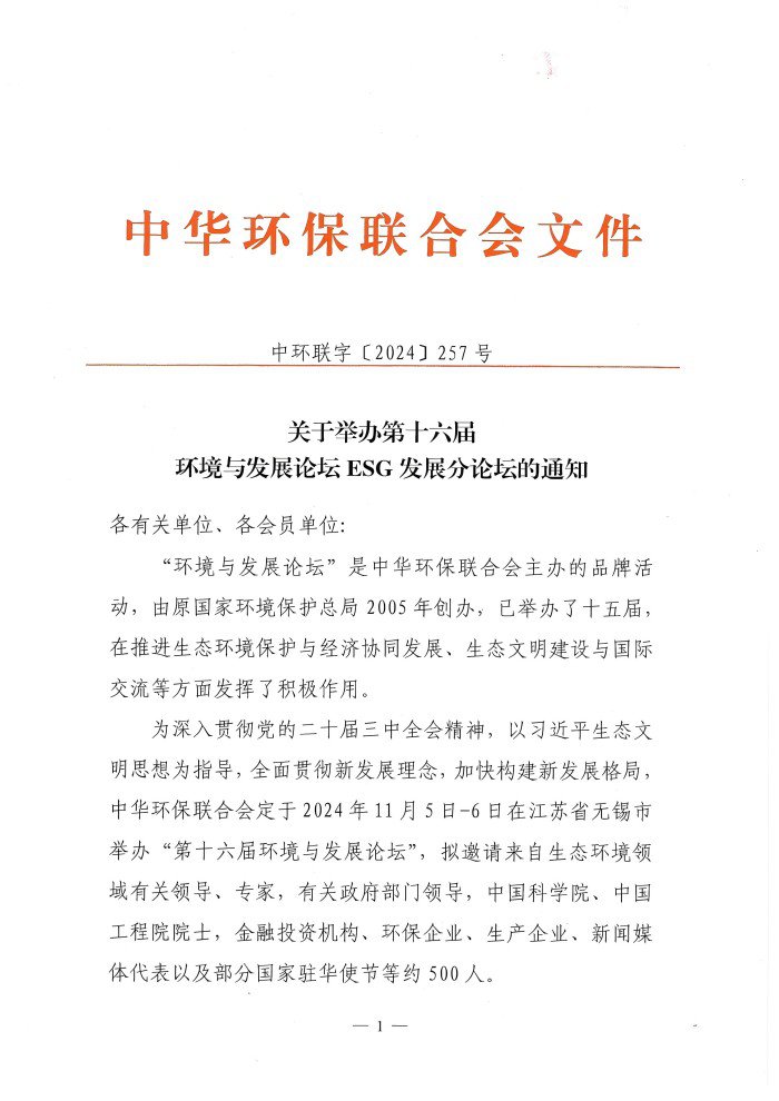 关于举办第十六届环境与发展论坛ESG发展分论坛的通知