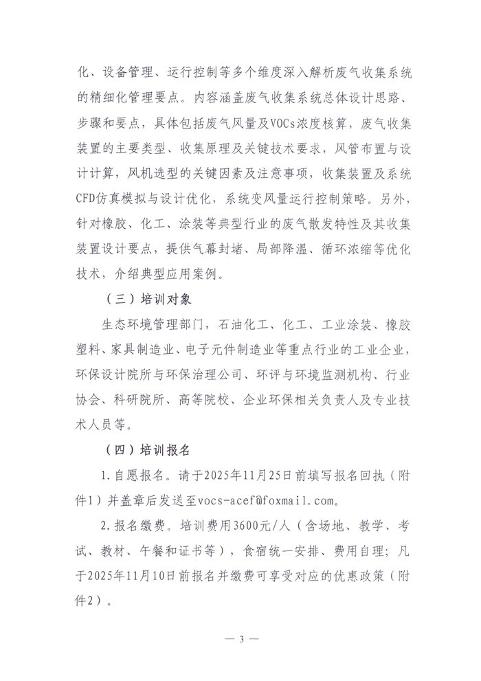 关于举办废气收集系统设计与精细化管理培训班的通知