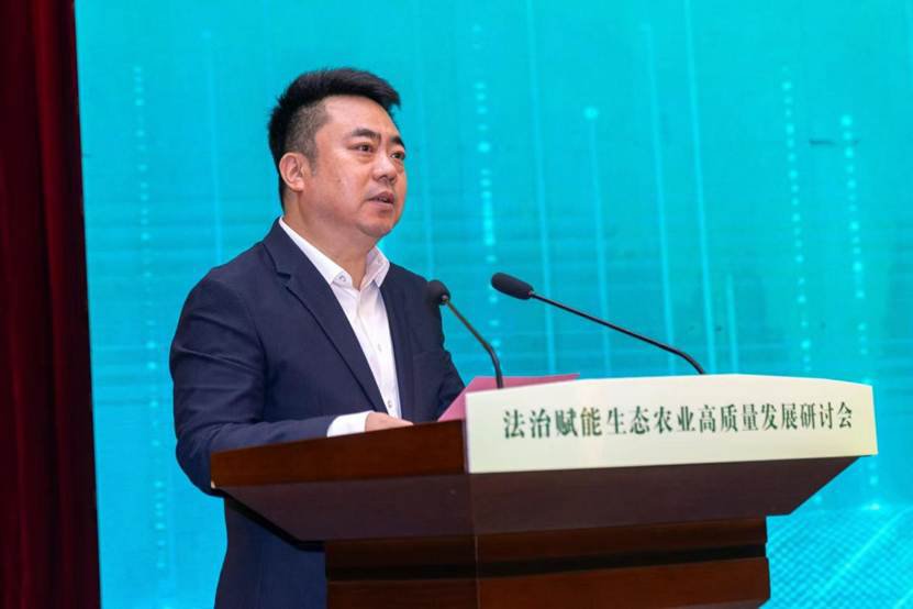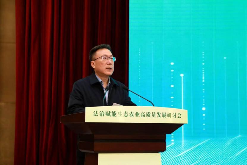 ——石军同志发表了《法治赋能生态农业是实现高质量发展的必由之路》主旨演讲,他提出,推动生态农业迈向更高水平,实现高质量发展,需要进一步深化法治实践,完善涉农法律法规体系,提升执法监管效能,强化司法保障作用,繁荣农业农村法治文化,让法治的精神深深植根于乡村振兴的沃土。一是法治奠定发展基石,以稳定的制度预期,构筑生态农业的“安全空间”;二是法治引领发展航向,以刚性的规则约束,划定绿色生产的“生态红线”;三是法治激活发展动能,以高效的权益保障,点燃科技创新的“制度引擎”;四是法治优化发展生态,以多元的协同治理,凝聚共建共享的“社会合力”。