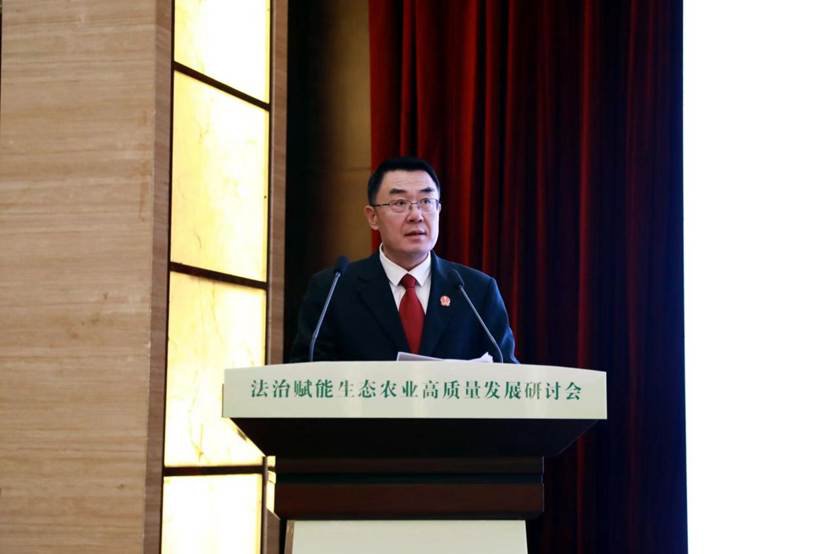 ——董治良会长在致辞中指出,中国基本国情是农业大国,农业始终是国家基础性产业,占据重要地位。党的十八大以来,以习近平同志为核心的党中央对推动农业高质量发展作出一系列重要部署。当前我国农业已进入全面绿色转型关键阶段,法治是生态农业发展重要保障。全国农业看山东,山东农业看潍坊,山东和潍坊不仅创造了闻名全国的 “寿光模式”,更在司法机关高效能服务生态农业高质量发展方面,走在了前面,创造了新鲜经验,提供了生动的实践样本。因此在山东潍坊的寿光市召开会议,探讨法治赋能生态农业高质量发展的议题,具有重要的理论和实践意义。