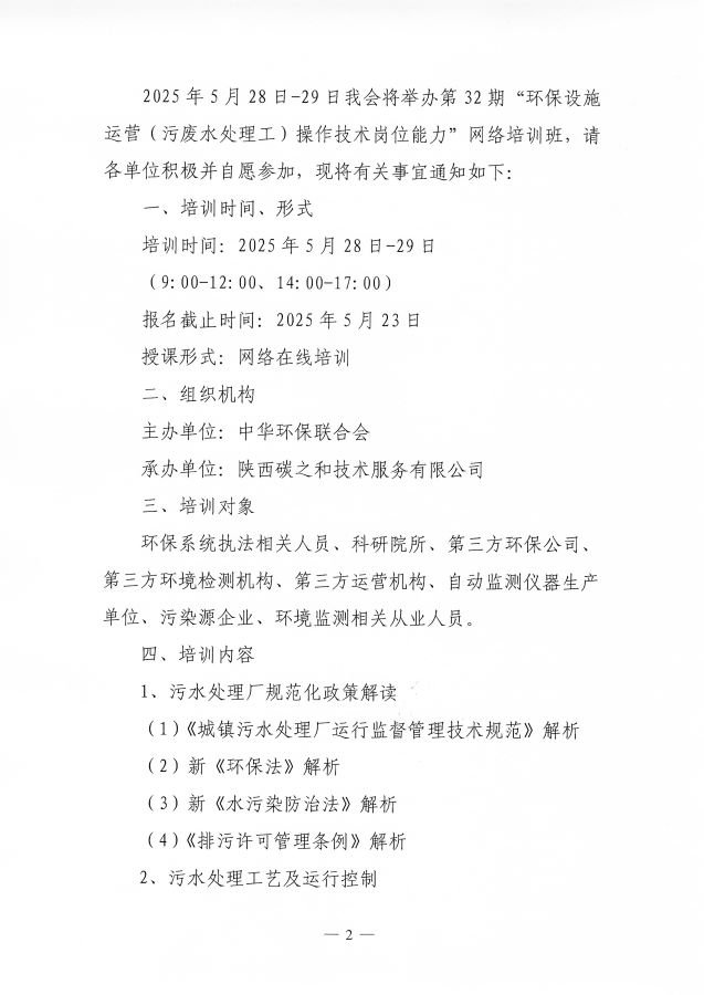 关于举办第32期“18luck新利苹果(污废水处理工)操作技术岗位能力”网络培训班的通知