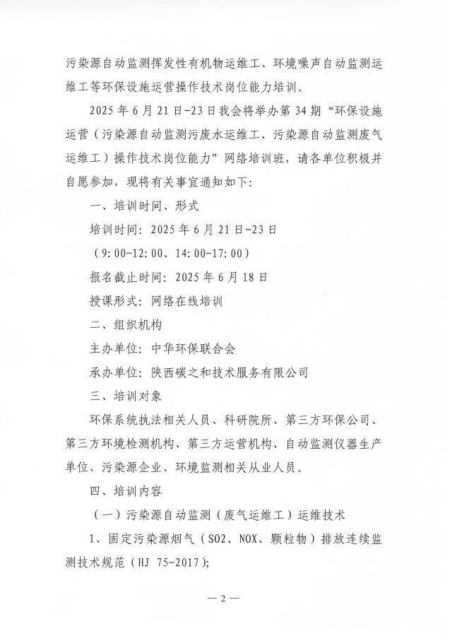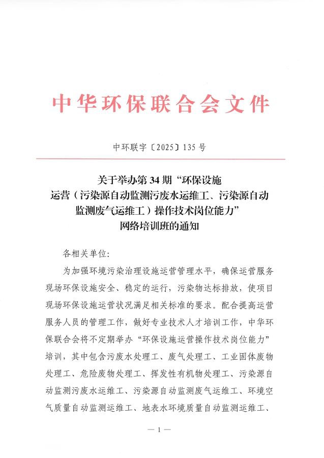 关于举办第34期“18luck新利苹果(污染源自动监测污废水运维工、污染源自动监测废气运维工)操作技术岗位能力”网络培训班的通知