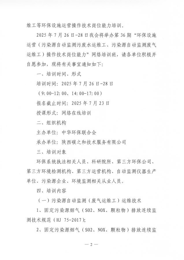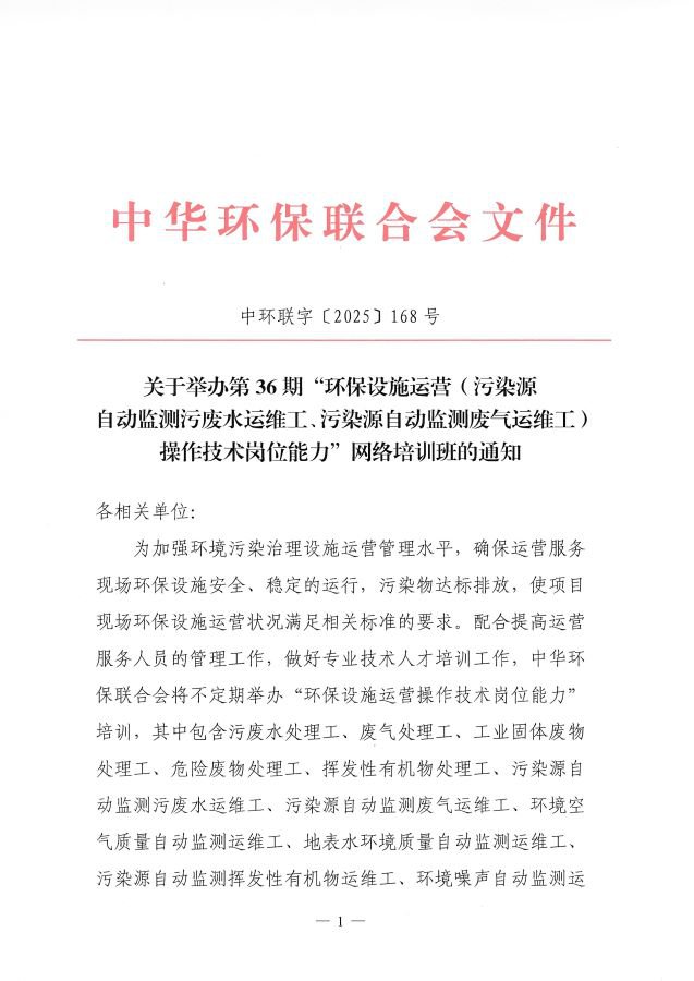 关于举办第36期“18luck新利苹果(污染源自动监测污废水运维工、污染源自动监测废气运维工)操作技术岗位能力”网络培训班的通知