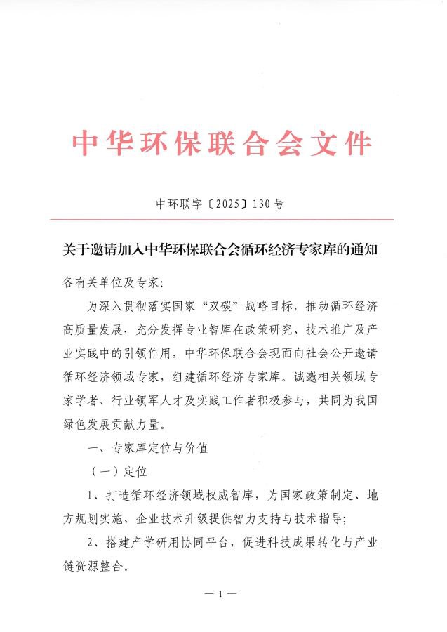 关于邀请加入18luck官网app循环经济专家库的通知