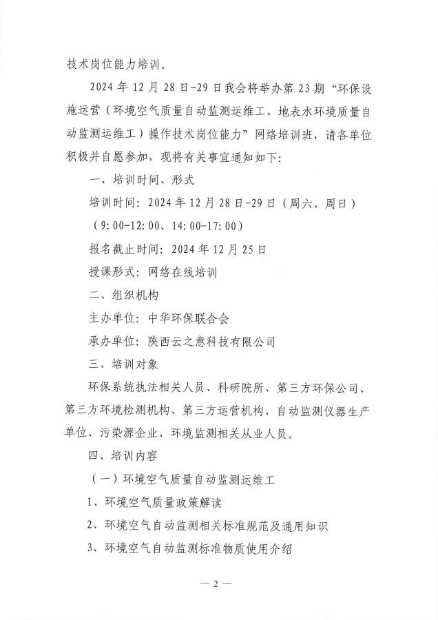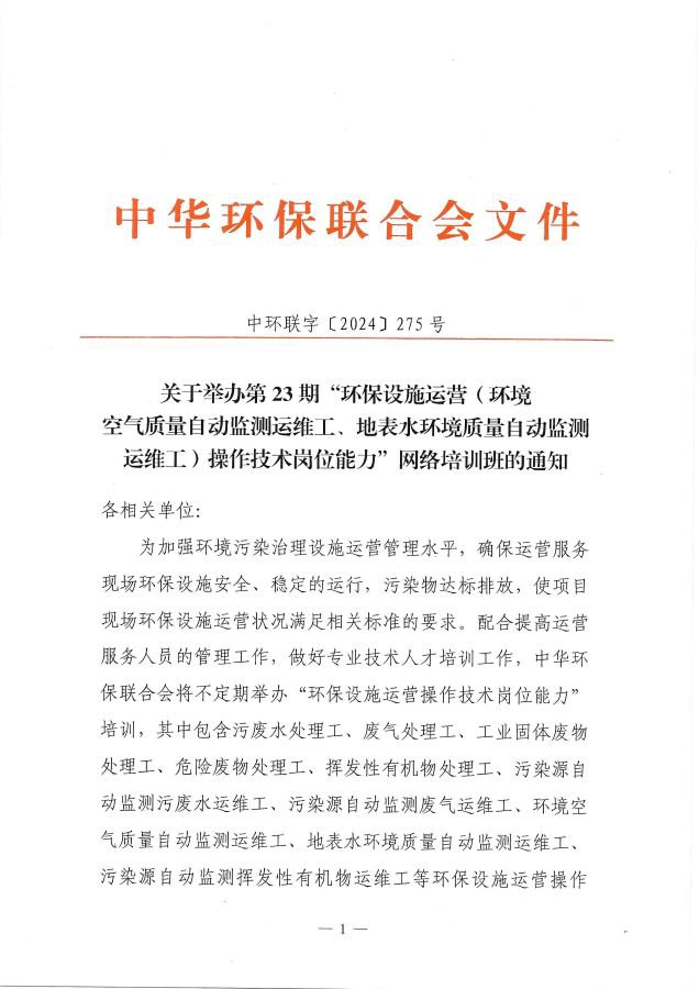 关于举办第23期“18luck新利苹果(环境空气质量自动监测运维工、地表水环境质量自动监测运维工)操作技术岗位能力”网络培训班的通知