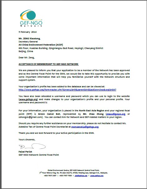 The GEF-NGO Network (hereinafter referred to as the Network) was established in May 1995. It was the result of a GEF Council decision to strengthen dialogue and partnership between NGOs worldwide and the GEF Secretariat, the GEF Council, the GEF Assembly and various partner agencies. The Network focuses on the environment and sustainable development aligned with the GEF mandate. So far, members of the Network from China include 13 organizations, eg. Nature Friends, Beijing Global Village, Green Camel Bell. Being a member of the Network, ACEF has the opportunity to contribute to the policy making of GEF and raise any concerns on GEF processes or implementation, and to participate in the Network meetings and activities, and to be notified of funding and capacity building opportunities. ![]() ![]() |