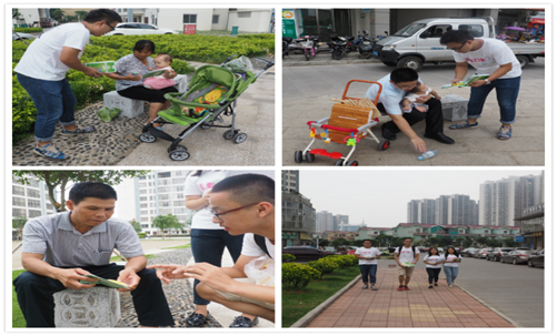 向民众发放宣传册、调查问卷,并且与民众亲切交流