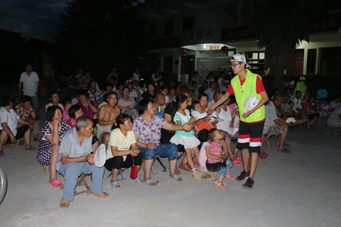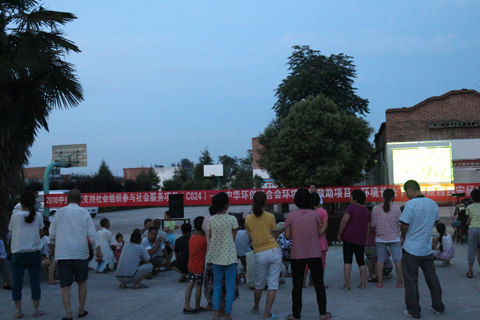 村民观看环保电影《超强台风》